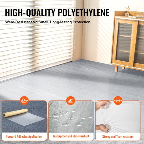 VEVOR Pellicola Protettiva per Tappeti, 0,91 x 60,96 m Protezione Pavimenti Superfici con Supporto Autoadesivo Rotolo Protettivo, per Tappetini Auto Adesivo Polietilene per Ristrutturazioni Edili