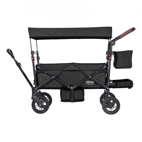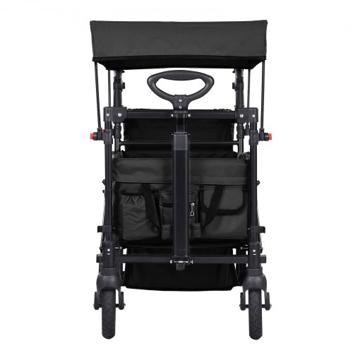 VEVOR Passeggino Wagon per 2 Bambini, Passeggino Pieghevole con Maniglia Regolabile, Tettuccio Rimovibile, Lmbracatura Circolare, 4 Ruote con Freni, Passeggino Portatile Multifunzione Campeggio, Nero