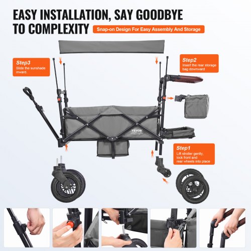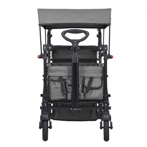 VEVOR Passeggino Wagon per 2 Bambini, Passeggino Pieghevole con Maniglia Regolabile, Tettuccio Rimovibile, Lmbracatura Circolare, 4 Ruote Freni Passeggino Portatile Multifunzione Campeggio, Grigio