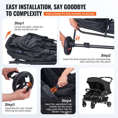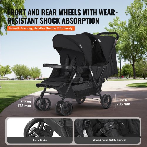 VEVOR Passeggino Doppio, Schienale/Poggiapiedi Regolabili, Passeggino Gemellare Pieghevole con Doppio Sedile, Cintura di Sicurezza Avvolgente, Cestino Portaoggetti, per Neonati, Bambini Piccoli (Nero)
