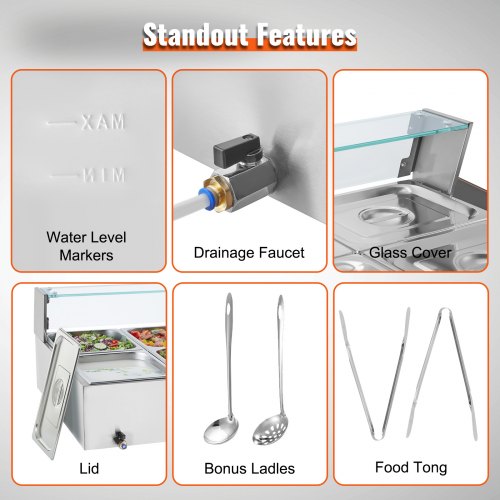 VEVOR Scaldavivande Elettrico Commerciale, in Acciaio Inox da 1500 W con Coperchio, Bagnomaria da Banco a 4 Teglie con Riscaldamento Rapido e Mestoli Forati, per Catering, Ristoranti, Feste