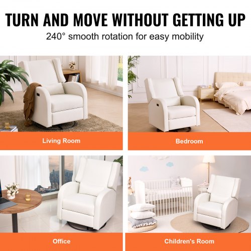 VEVOR Poltrona reclinabile elettrica girevole, Capacità di carico 250 libbre, Poltrona reclinabile aliante girevole, Superficie in poliestere reclinabile per soggiorno, camera da letto