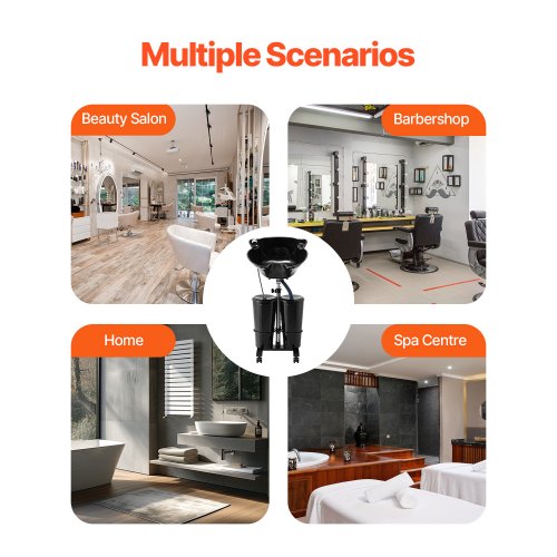 VEVOR Lavatesta Portatile, Lavatesta per Lavare i Capelli con Pompa Elettrica, 2 Secchi, 2 Doccette, Tubo di Scarico, Altezza e Angolazione Regolabili, Lavatesta Portatile per Salone Casa, Nero