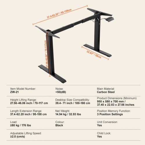 VEVOR Struttura per Scrivania, Altezza Regolabile 70-117 cm Lunghezza tra 95-158 cm, Supporto per Scrivania Elettrica per Scrivanie Computer, Base per Workstation Ergonomica, Solo Telaio