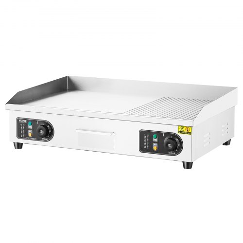VEVOR Piastra Elettrica Commerciale, Piastra Half-Flat Top da 4400 W, Temperatura Regolabile 50 - 300°C, 73 x 40 x 1 cm Piastra in Acciaio Inossidabile con 2 Pale 2 Spazzole per la Casa Ristorante