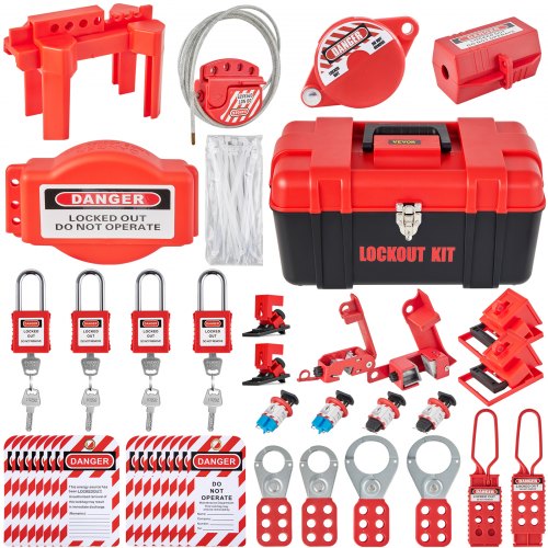 VEVOR Kit di Etichettatura di Blocco Elettrico da 47 Pezzi, Kit di Sicurezza Loto Include Lucchetti, Fermagli, Etichette, Blocchi di Spine, Borsa per Trasporto, per Energia Elettrica Industriale