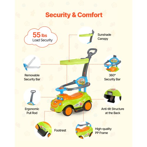 VEVOR Macchinina a Spinta Giocattolo Auto per Bambini, Capacità 25 kg, con Spondina di Sicurezza, Maniglia, Macchina Cavalcabile per Bambini per Sviluppo Muscolare ed Equilibrio