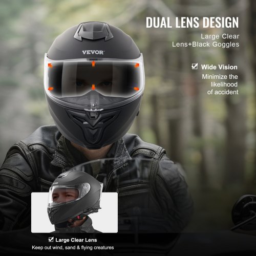 VEVOR Casco da Moto, Smascherato, Casco da Motocross Confortevole, ABS Intelligente da Strada e Casco ad Alta Densità con Slot per Bluetooth e Lenti Intercambiabili, per Giovani Adulti, Taglia XL