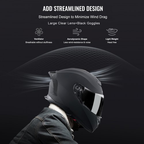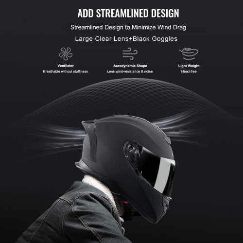 VEVOR Casco da Moto, Smascherato, Intelligente Strada ABS Casco ad Alta Densità con Slot per Bluetooth Lenti Intercambiabili, Casco da Motocross Confortevole Adatto Giovani Adulti, Taglia L Nero