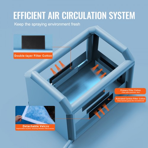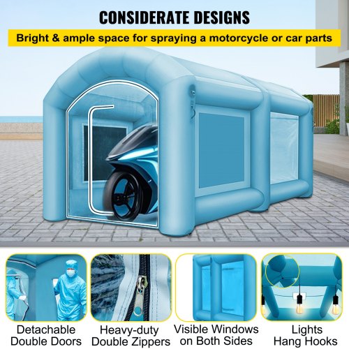 VEVOR Tenda di Verniciatura a Spruzzo Gonfiabile per Auto Moto SUV 2 Ventilatori 750W 480W Sistema di Filtrazione Filtro 3 Strati 6 Finestre d'Aerazione, Tenda Cabina per Verniciatura in Oxford 210D