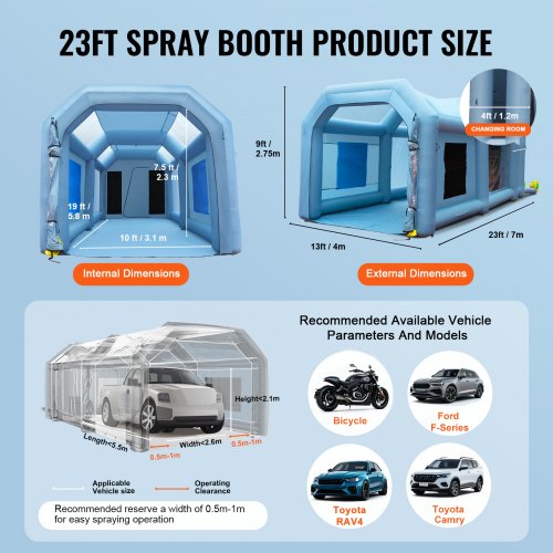 VEVOR Tenda Gonfiabile Cabina di Verniciatura Gonfiabile 8 x 4 x 3 m Tenda di Verniciatura Gonfiabile, Cabina di Verniciatura per Auto, Postazione di Lavoro Tessuto Oxford 210D per Verniciatura