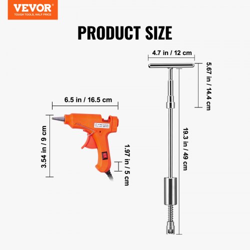 VEVOR Kit 25 Pezzi Strumento per Riparazione di Ammaccature a Ponte Potenza 20W Dimensioni Applicabile 0.5 cm-9 cm per Carrozzeria Auto Veicolo da Garage Officina Fai-da-te, Kit Estrattore Ammaccature