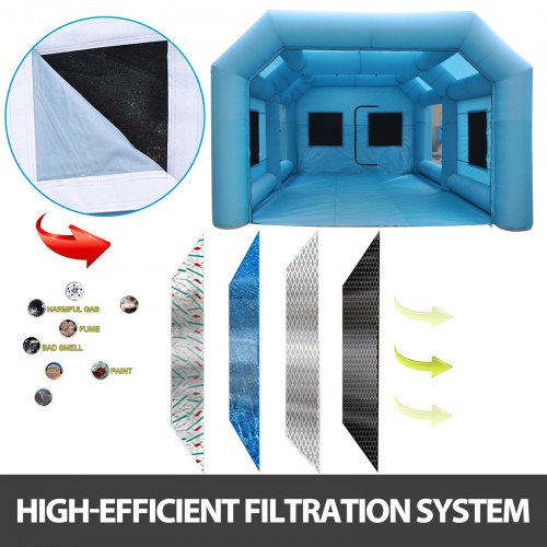VEVOR Tenda di Verniciatura a Spruzzo Gonfiabile per Auto Moto SUV Ventilatore 950W Sistema di Filtrazione Filtro 3 Strati 6 Finestre d'Aerazione, Tenda Cabina per Verniciatura da Esterno Oxford 210D