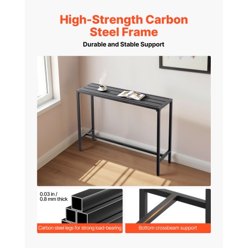 VEVOR Tavolo Alto da Bar per Esterni 100 x 37,5 cm, Tavolino da Pranzo Rettangolare Piano Impermeabile, Struttura in Metallo, Tavolo da Giardino Cortile, Terrazza, Bordo Piscina, Soggiorno