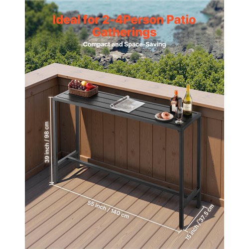 VEVOR Tavolo Alto da Bar per Esterni 140 x 37,5 cm, Tavolino da Pranzo Rettangolare Piano Impermeabile, Struttura in Metallo, Tavolo da Giardino Cortile Terrazza, Bordo Piscina, Soggiorno