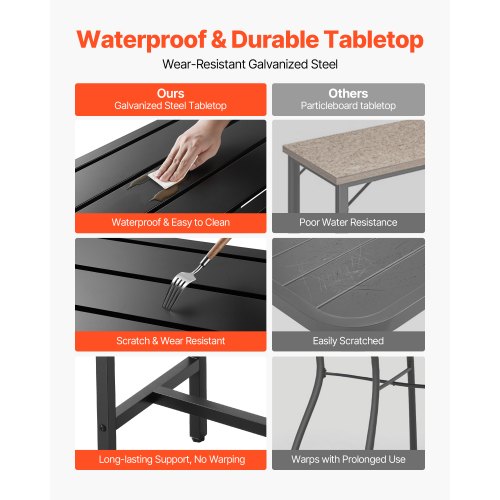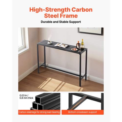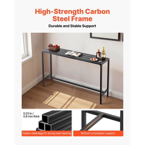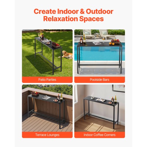 VEVOR Tavolo Alto da Bar per Esterni 120 x 37,5 cm, Tavolino da Pranzo Rettangolare Piano Impermeabile, Struttura in Metallo, Tavolo da Giardino Cortile Terrazza, Bordo Piscina, Soggiorno