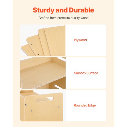 VEVOR Set Tavolo e Sedia per lo Svezzamento, Set Tavola in Legno per Bambini 665 x 360 x 520 mm, Sgabello Regolabile Altezza a 3 Livelli, Sedia per Leggere, Mangiare, Legno Naturale