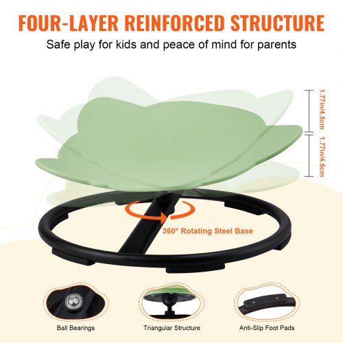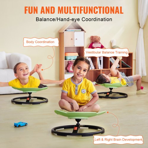 VEVOR Altalena Elefante per Bambini, Giostra Sensoriale per Autismo Carico 100 kg, Seduta Girevole a 360° Sedile con Base in Metallo Antiscivolo, per Coordinazione, Equilibrio e Concentrazione, Verde