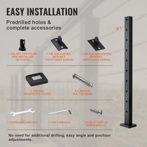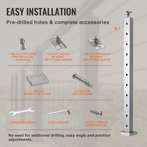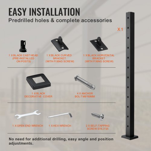 VEVOR Palo per Ringhiera per Scale, Palo per parapetto Fori Inclinati a 30 Gradi, 12 Fori Preforati, Palo Ringhiera Acciaio Inox 106,7x2,5x5 cm, Nero,1JZLGZHS1067HNEKBV0