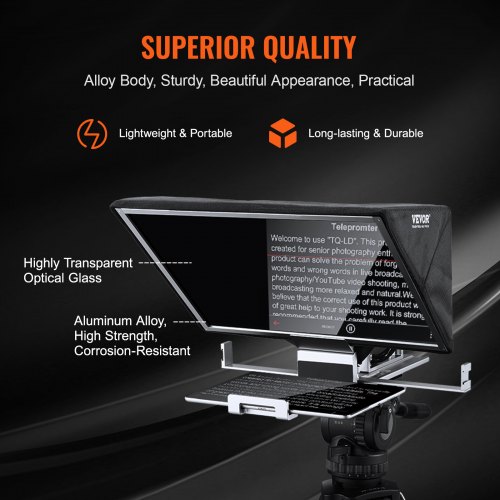 VEVOR Teleprompter in Lega di Alluminio, Suggeritore Tavolo con Spettroscopio ad Angolo Regolabile, Telecomando, Compatibile con iOS Android, per Tablet Registrazione Video Streaming Live 22,35 cm
