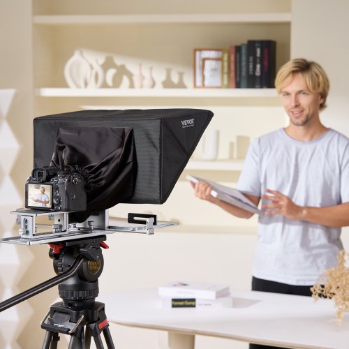 VEVOR Teleprompter, Suggerimento da Tavolo in Lega di Alluminio 406 mm con Spettroscopio Regolabile, Telecomando Compatibile con iOS/Android per Fotocamera, Tablet, Registrazione Video Streaming Live