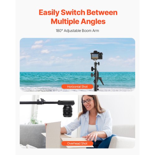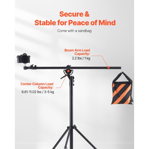 VEVOR Supporto per Luce in Alluminio con Cuscino d'Aria, Altezza Massima 390 cm Supporto Fotografico Regolabile con Braccio a Braccio, Carico Massimo 5 kg Vite da 6,35 mm per Flash da Studio, Softbox