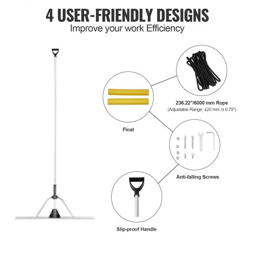 VEVOR Rastrello paesaggistico VEVOR Testa da 91,4 cm Rastrello paesaggistico in alluminio da 190,5 cm Manico regolabile