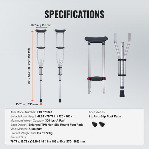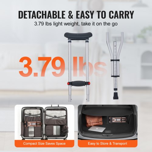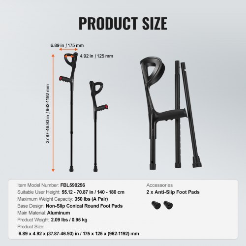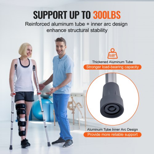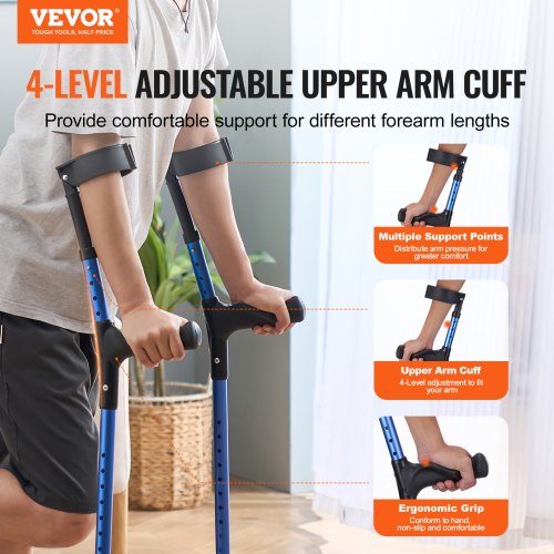 VEVOR Stampelle Pieghevoli da Avambraccio per Adulti, Stampelle con Altezza Regolabile 10 Livelli, in Alluminio Leggere con Polsino Aperto per Chirurgia Lesioni alle Gambe Disabili, 1 Paio 158,7 kg
