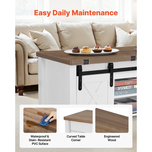 VEVOR Tavolino da Caffè Sollevabile da 1200 mm, Tavolino Rustico con Anta a Fienile e Vano Portaoggetti Nascosto, Moderno Tavolo Rettangolare Sollevabile per Soggiorno, Ufficio, Casa, Bianco