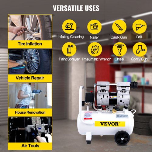 VEVOR Compressore Silenzioso 750W, Compressore d'Aria Oil-free 50 L, Pressione 8 Bar, Compressore d'Aria Silenzioso 220V, Compressore Aria Portatile, Rumorosità: 68 dB, per Esigenze di Gonfiaggio