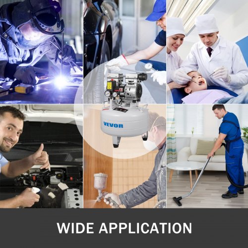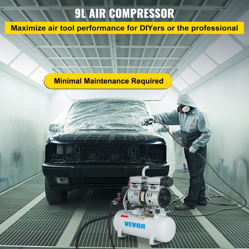 VEVOR Compressore d'Aria Senza Olio Ultra Silenzioso da 2 Galloni, Compressore Silenziato con Motore in Rame Puro, Compressore d'Aria 550 W, Rumorosità meno 48 dB, Compressore d'aria Portatile