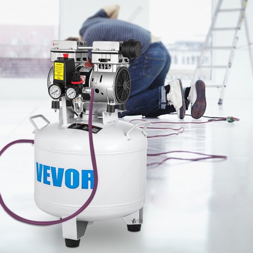 VEVOR Compressore d'Aria, Serbatoio in Acciaio 30 L Compressore d'Aria Senza Olio, Compressore Portatile Ultra Silenzioso da 80 dB per Riparazioni Auto, Gonfiaggio Pneumatici, Verniciatura a Spruzzo