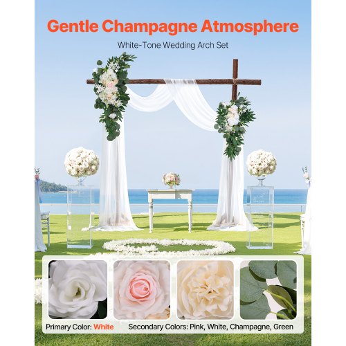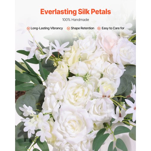 VEVOR Kit di Fiori Artificiali per Arco Nuziale, Fiori Bianchi per Arco Nuziale con Kit di Tende, 2 Pezzi Composizione Floreale, 1 Pezzo Tende Trasparenti, per Bouquet Cerimonia Sfondo Ricevimento