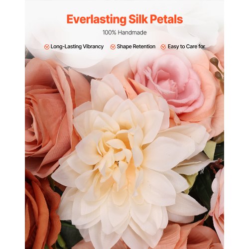 VEVOR Kit di Fiori Artificiali per Arco Nuziale, Fiori Arancioni per Arco Nuziale con Kit di Tende, 2 Pezzi Composizione Floreale, 3 Pezzo Tende Trasparenti, per Bouquet Cerimonia Sfondo Ricevimento