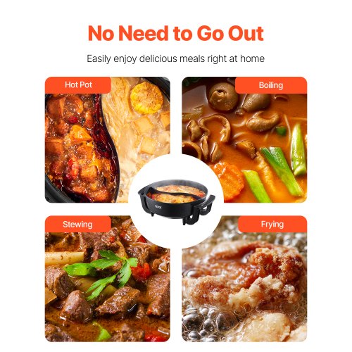 VEVOR Pentola Calda 800W Piastra Grill Elettrica 1600W da Tavolo BBQ Festa Uso Casalingo 2400W, Hotpot Elettrico con Piastra Doppia Grill da Banco per Esterni Temperatura Regolabile, Hotpot Elettrico