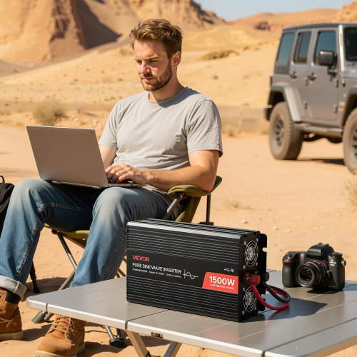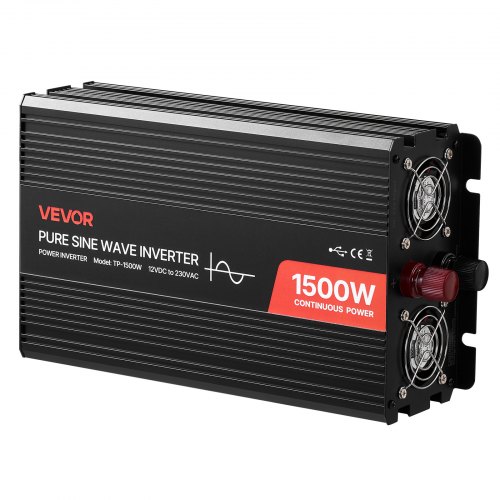 VEVOR Inverter di Corrente da 1500 W, Inverter a Onda Sinusoidale Pura da 12 V CC a 230 V CA, Convertitore per Caricabatteria da Auto con Telecomando, Porte USB e Tipo C, 2 Prese CA, per Camper