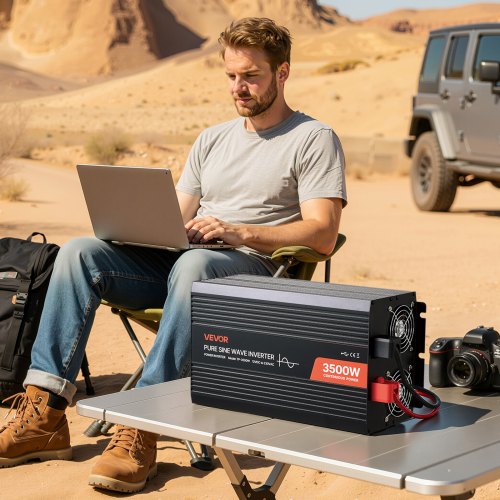 VEVOR Inverter di Corrente da 3500 W, Inverter a Onda Sinusoidale Pura da 12 V CC a 230 V CA, Convertitore per Caricabatteria Solare da Auto con Display LCD, Telecomando, Porte USB e Tipo C, Prese CA