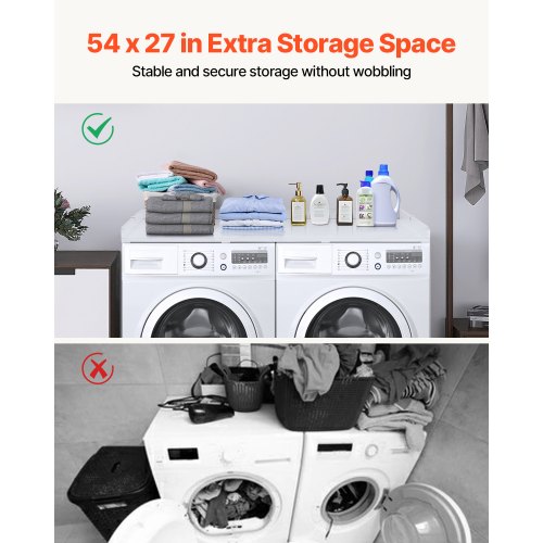 VEVOR Piano di Lavoro per Lavatrice e Asciugatrice con Ripiano a 2 Livelli, 137 x 70 cm Piano per Lavatrice Asciugatrice in Legno con Cuscinetti Antiscivolo, Copertura per Bucato Impermeabile, Bianco