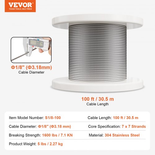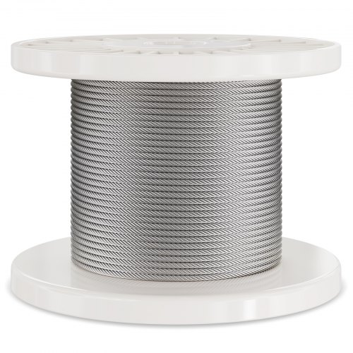 VEVOR Kit di Cavi Metallici da 3,18 mm 182,3 m Cavo in Acciaio Inossidabile 316, con Taglierino, Guanti, Resistenza alla Rottura di 7,1 KN Costruzione di Fili 7 x 7 di Qualità Aeronautica Marina