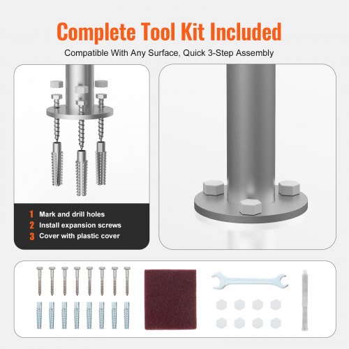 VEVOR Corrimano per Piscina 915 x 330,2 mm Ringhiera per Piscina in Alluminio con Piastra di Base per Piscine Interne Esterne, Ringhiera di Sicurezza Piscine, Maniglione Antiruggine con Accessori