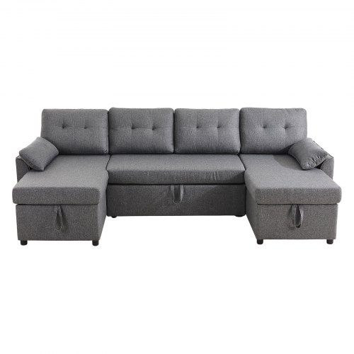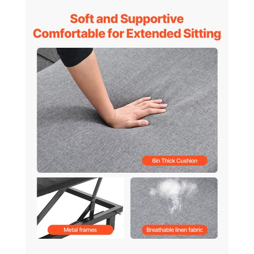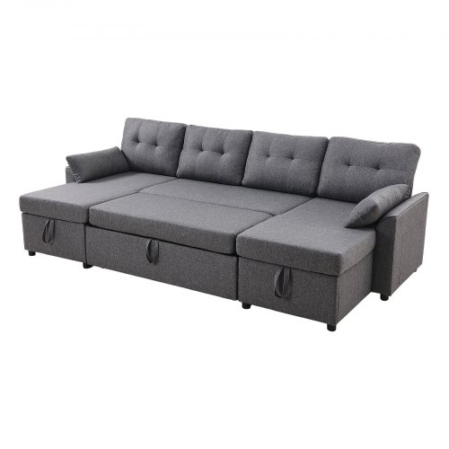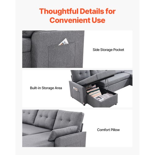 VEVOR Divano Letto a Forma di U, Divano Letto Trasformabile 2 Tasche Laterali 2 Cuscini, Poltrona Estraibile per Casa, Poltrona Trasformabile Soggiorno, Appartamento, Struttura in Metallo, Grigio