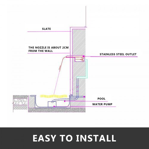 VEVOR Fontana per Piscina a Cascata 59,1 x 4,5 x 3,1 Pollici Fontana per Piscina Rettangolare Costruita in Acciaio Inossidabile Laghetto per Cascata