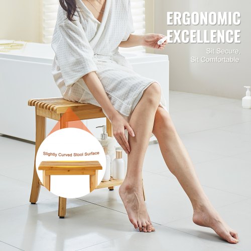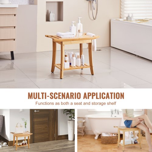 VEVOR Panca da Doccia in Bambù 485 x 288 x 465 mm Sgabello da Doccia Impermeabile, Capacità di 149,7 kg Organizzatore per Sedile da Bagno Idromassaggio, per Adulti Anziani