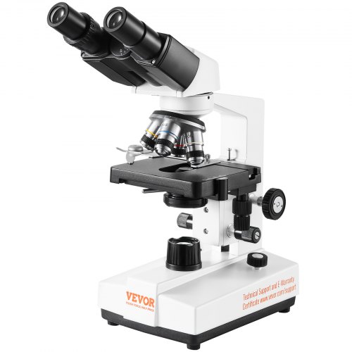 VEVOR Microscopio Ottico Binoculare Microscopio Ingrandimento 40X-2500X Microscopio Biologico Messa a Fuoco Grossolana Fine Tavolino Biologico 115 x 125 mm 2 Livelli, Microscopio Binoculare Composto