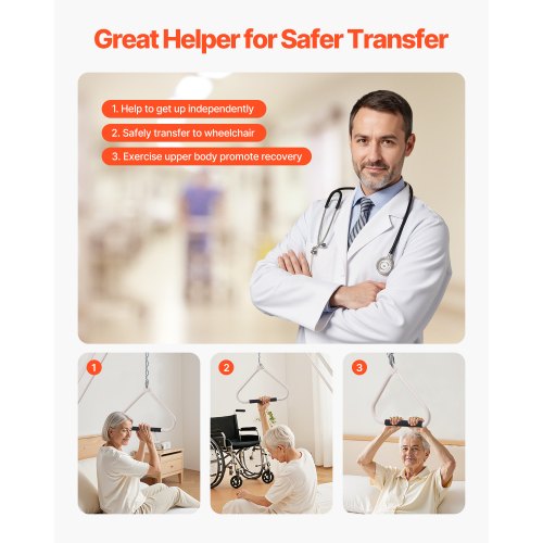 VEVOR Sponda Letto Pieghevole per Anziani, Sponda di Supporto per il Letto da 70 cm in Metallo con Cinghia di Fissaggio, Bastone da Comodino con Tubo Regolabile in Altezza, King, Queen