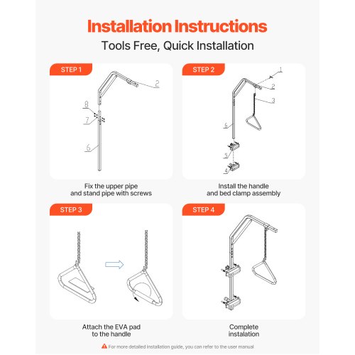 VEVOR Sponda Letto Pieghevole per Anziani, Sponda di Supporto da 122 cm in Metallo con Cinghia di Fissaggio, Bastone da Comodino con Tubo Regolabile in Altezza, per Letto King, Queen