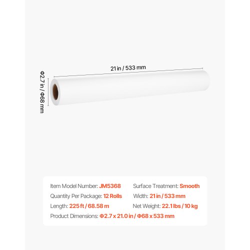 VEVOR Rotoli di Carta per Poggiatesta, 25 Pezzi, 21,6 cm x 68,9 m, Carta Monouso per Visita Medica con Superficie Liscia, per Poggiatesta Protezione, per Tavoli da Massaggio, Bianco