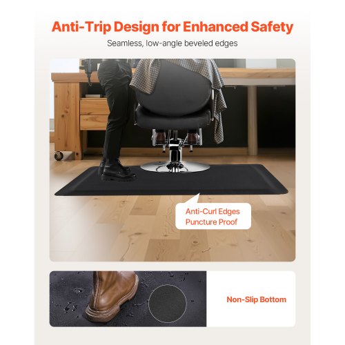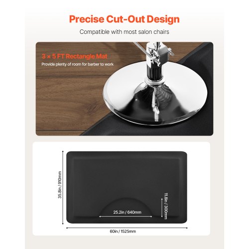 VEVOR Tappetino da Salone per Parrucchieri 1525 x 915 mm Tappetino da Salone Rettangolare, 23 mm di Spessore, con Taglio Rotondo, Bordi Smussati Anti-Inciampo e Fondo Antiscivolo, Nero Opaco