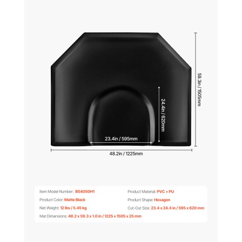 VEVOR Tappetino da Salone per Parrucchieri 1225 x 1505 mm Tappetino Esagonale per Sedia da Salone, 25 mm di Spessore, con Taglio Rotondo, Facile da Pulire e Bordi Smussati Anti-Inciampo, Nero Opaco