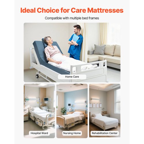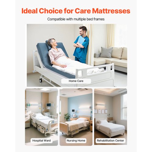 VEVOR Sponda Letto Pieghevole per Anziani, Sponda di Supporto per il Letto da 97 cm in Metallo con Cinghia di Fissaggio, Bastone da Comodino con Tubo Regolabile in Altezza, King, Queen
